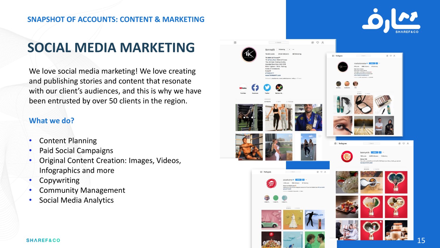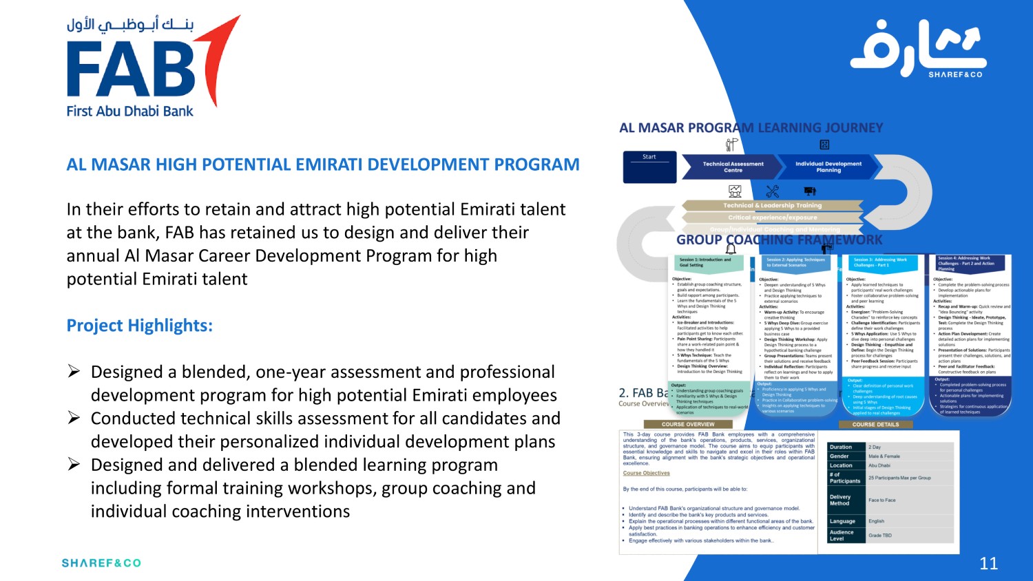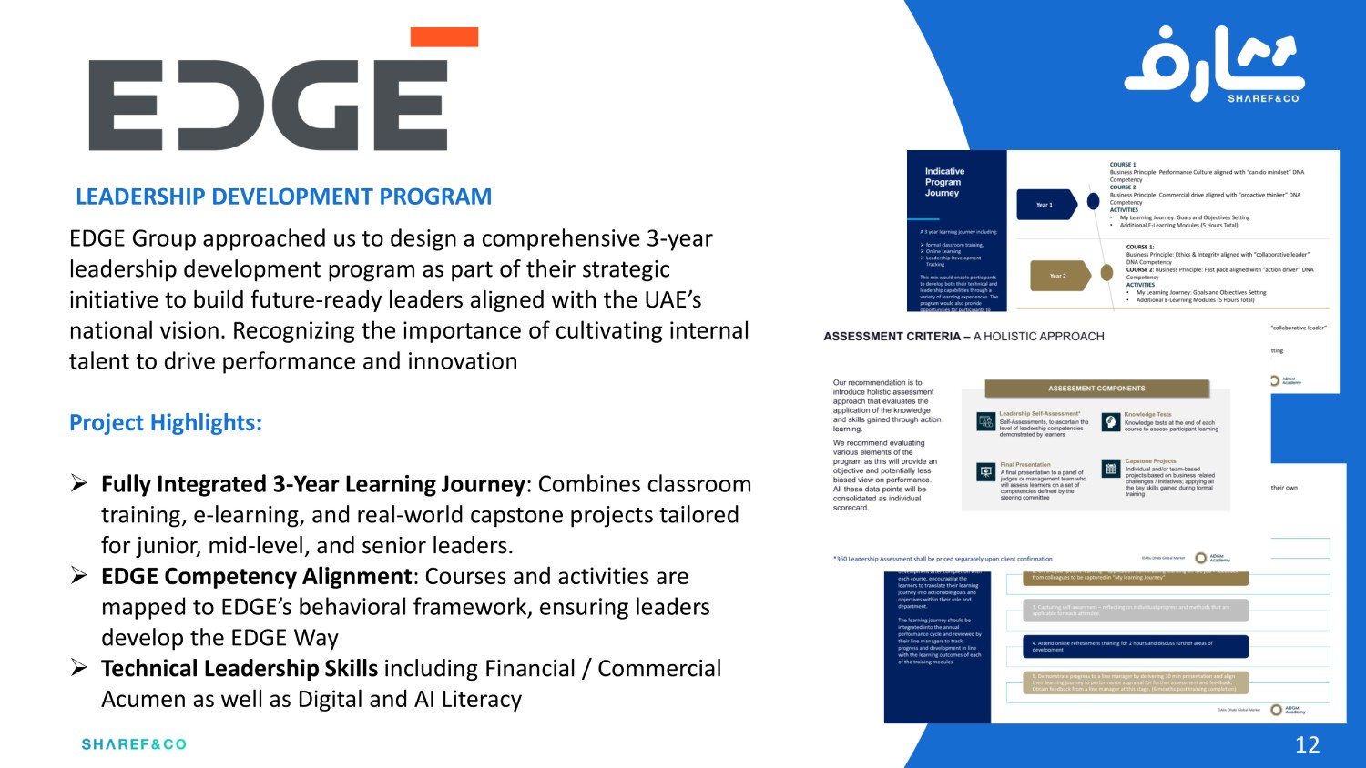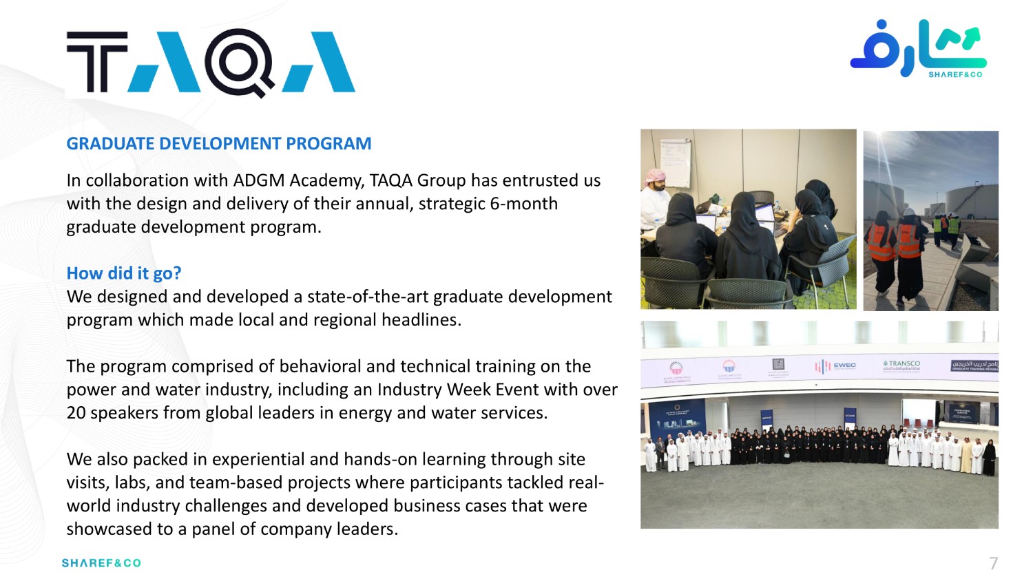 Drawing on over 40+ years of combined experience and diverse skills sets from a global team of experts, Sharef & Co. has been trusted by over 80 global clients to deliver everything from strategy and operating models, branding and marketing campaigns; to process re-engineering, organizational development and corporate training programs.